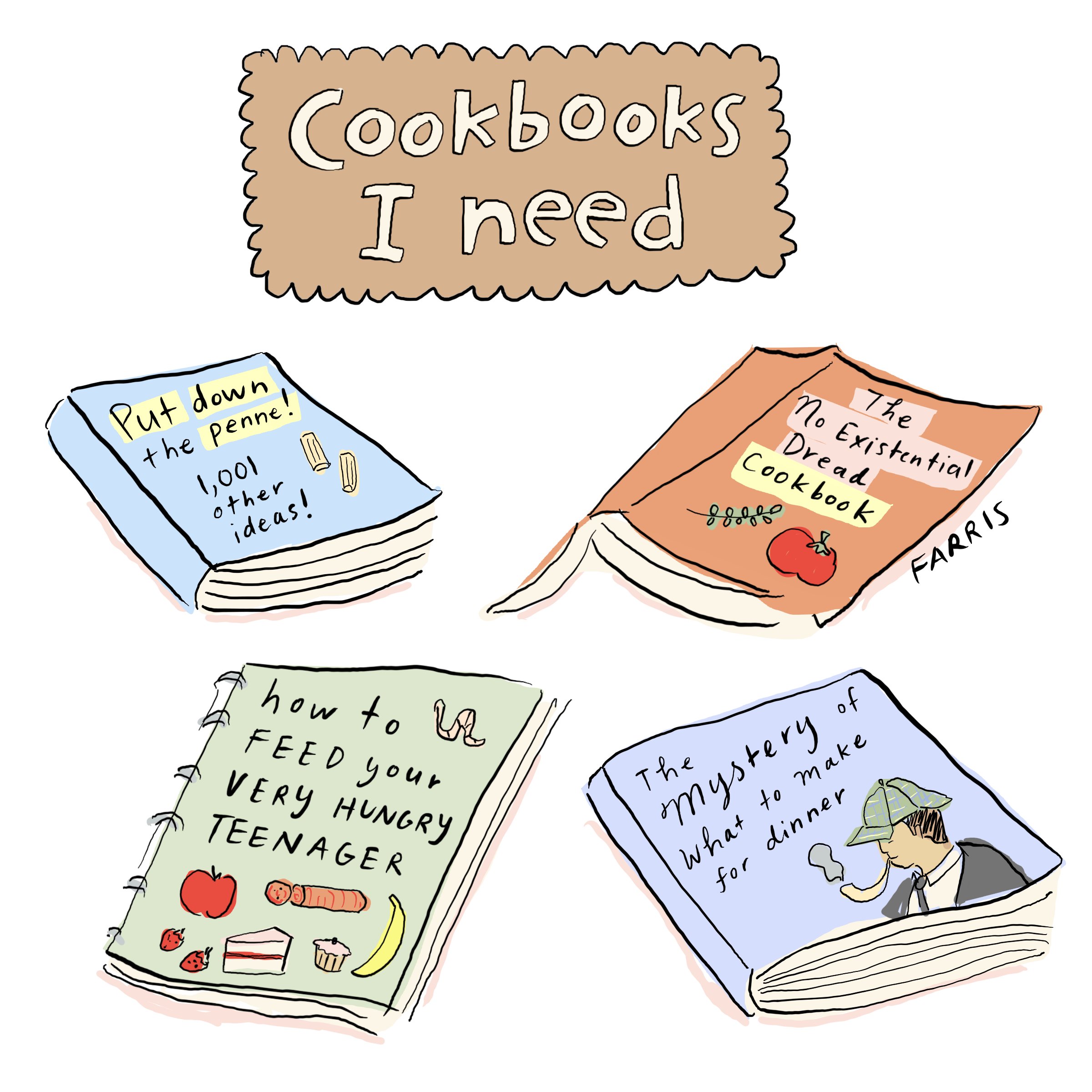 Oops, make that 75%. I mis-remembered the “Cookbooks I need” title balloon as another cookbook.