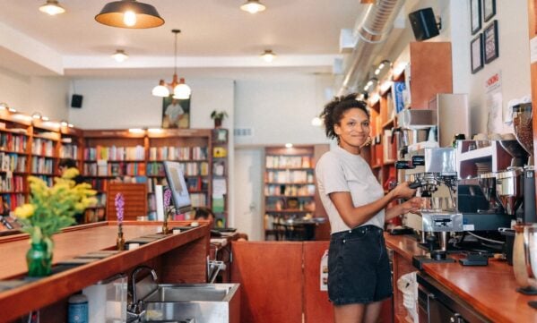The bookstore owner shares her work outfits and a $60 wedding ring.